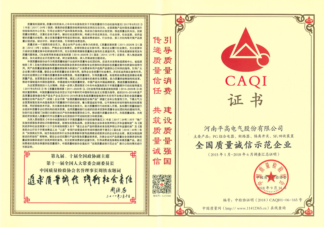 全國(guó)質(zhì)量示范企業(yè)