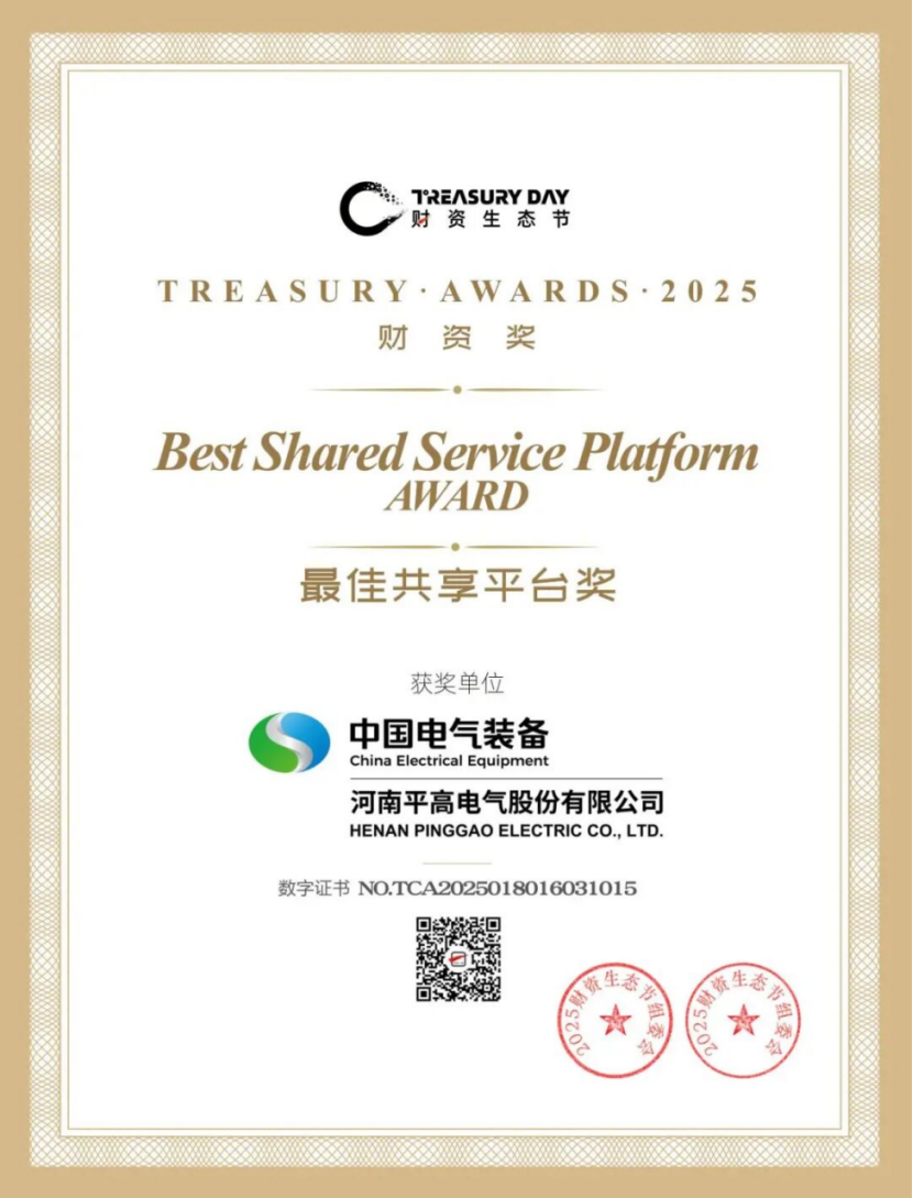 9月26日,平高電氣在第六屆財資生態(tài)節(jié)暨第十三屆中國財資年會的2025財資獎(Treasury ?Awards 2025)評選中獲得“最佳共享平臺獎”(Best Shared Service Platform Award)。該獎項(xiàng)旨在表彰在財務(wù)共享中心建設(shè)方面具有出色表現(xiàn)的企業(yè),充分體現(xiàn)了業(yè)界對平高電氣財務(wù)共享創(chuàng)新實(shí)踐的認(rèn)可。