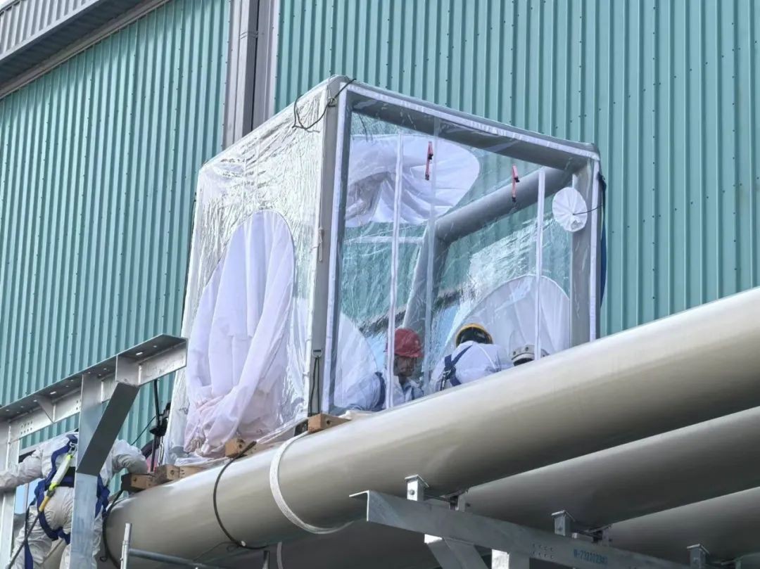 安裝過程中嚴(yán)格執(zhí)行“四無”管理,針對不同作業(yè)場景,設(shè)計防塵室及大、中、小型防塵棚,形成立體防護(hù)網(wǎng),主設(shè)備、戶內(nèi)母線、戶外分支母線均在不同的防塵棚內(nèi)施工作業(yè)。固化包裝蓋板拆解的“三吸兩擦“,精準(zhǔn)去除法蘭面、螺栓孔等部位異物。對接點(diǎn)檢作業(yè)采用“吸-擦-吸”循環(huán)的方式,杜絕外部異物混入?,F(xiàn)場通過實施差異化管控,有效控制異物,及時消除隱患,為高質(zhì)量安裝及“零缺陷”交付奠定基礎(chǔ)。
