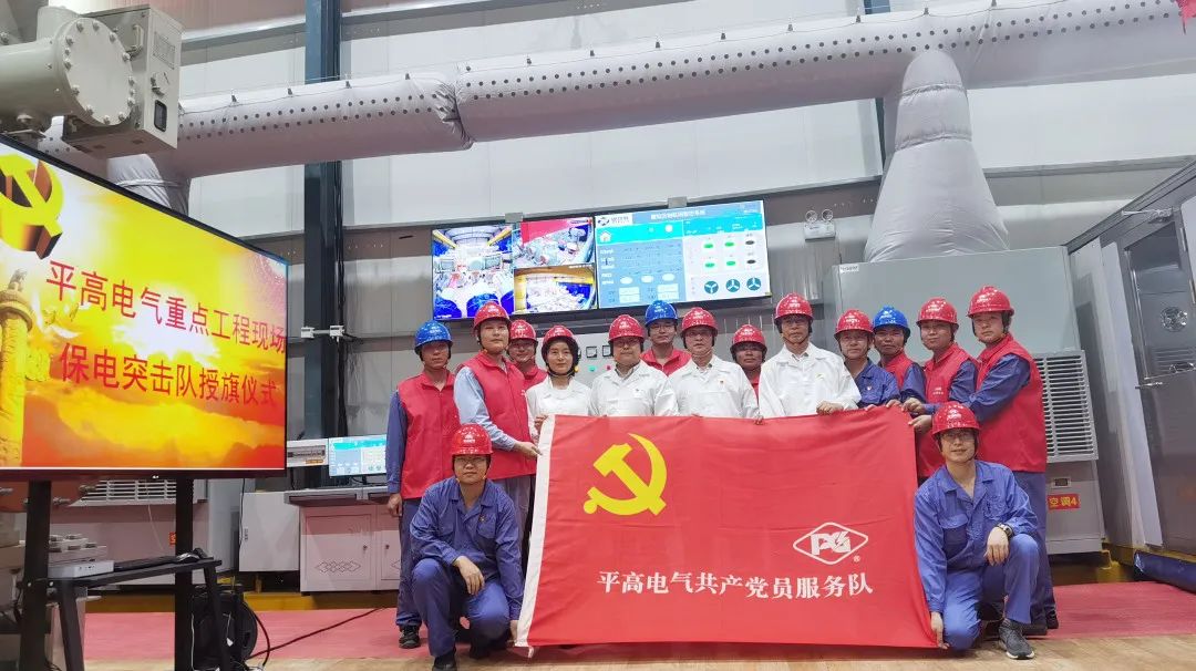 ?發(fā)揮黨員突擊隊在攻堅克難中先鋒作用。平高電氣黨委負責人為平高電氣武漢站黨員突擊隊授旗,要求現(xiàn)場全體黨員要在急難險重面前充分發(fā)揮黨員的的先鋒模范作用。全體隊員鄭重宣誓,為全面提升設備質量,全力打造特高壓精品工程承諾。
