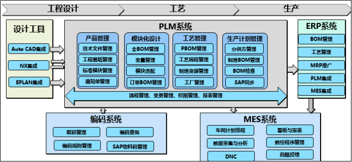 通過NX三維零件設(shè)計、EPLAN電工電路設(shè)計應(yīng)用,使技術(shù)人員能夠迅速建模,為智能制造提供智慧方案。通過開展PLM、ERP與MES的系統(tǒng)集成,實現(xiàn)以BOM為核心的數(shù)據(jù)貫通和以業(yè)務(wù)為核心的流程貫通。管理人員只需打開MES,輕點鼠標,各工序的生產(chǎn)情況、產(chǎn)出及庫存情況、成品庫存等就能呈現(xiàn)眼前。系統(tǒng)的集成應(yīng)用,使零件庫存降低49.24%,核心產(chǎn)品生產(chǎn)周期由21.3天縮短為18.1天,生產(chǎn)效率提升30%,產(chǎn)品不良率降低20%,電子化質(zhì)檢卡使減少用紙12萬張。