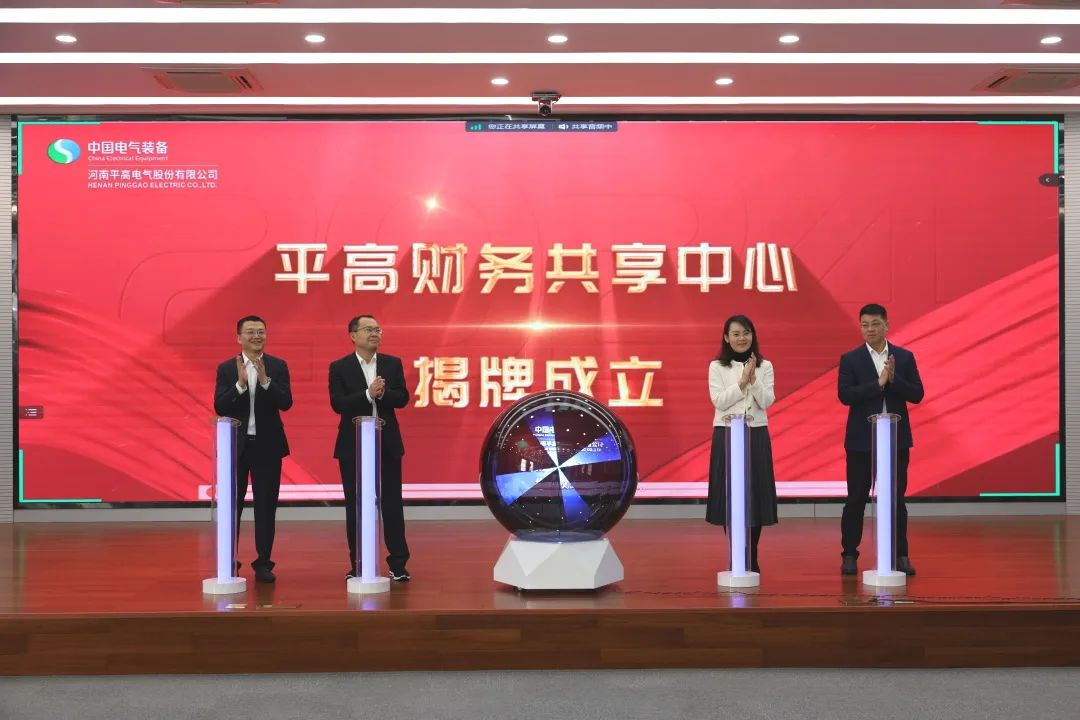 4月12日,平高財務共享中心在平頂山舉行揭牌儀式。中國電氣裝備財務資產(chǎn)部部長杜丹丹、會計處處長胡威威,平高電氣黨委副書記、總經(jīng)理朱琦琦,黨委委員、總會計師李亞軍共同為“平高財務共享中心”成立揭牌。中國電氣裝備黨委常委、總會計師徐鴻視頻見證揭牌儀式并講話。